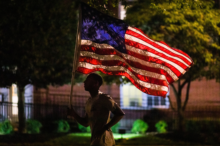 On 9/11 was up a dark thirty in the morning to cover a 9/11 Remembrance Run with the university’s ROTC programs. I made this image as the guide carrying the American Flag, leads his group through Downtown Knoxville.