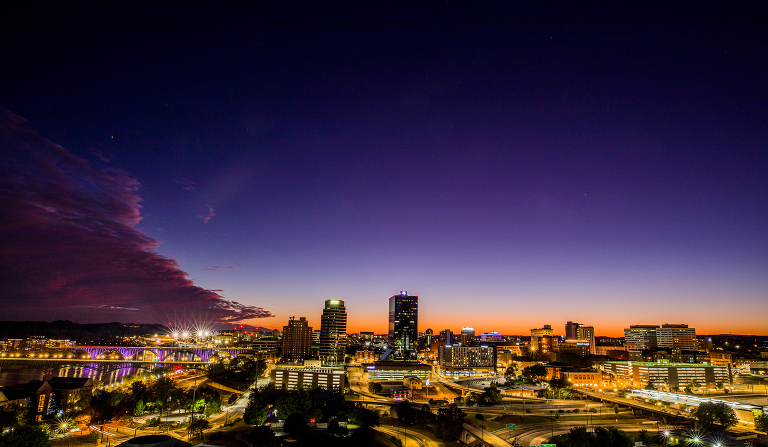 Our athletic’s photographer texted if I wanted to make a skyline photo because we were suppose to have a nice sunset. I said sure. He replied “Do you have a spot to go?” I scrambled and with some talking and jumping through hoops, we were able to access a good position at Hotel Knoxville.